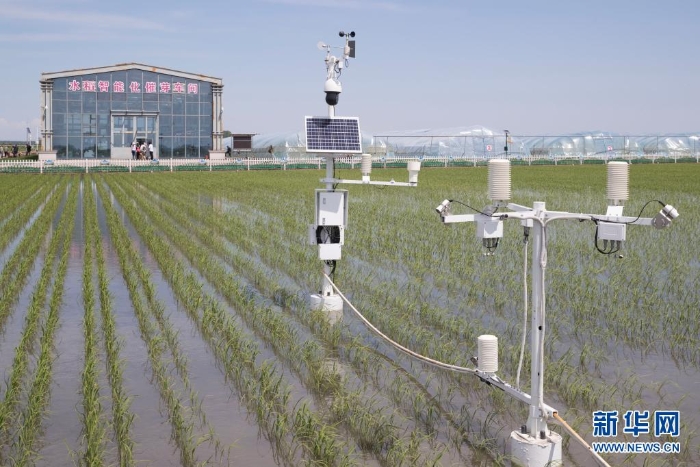 黑龍江省富錦市東北水田現(xiàn)代農(nóng)機(jī)專業(yè)合作社稻田里的專業(yè)設(shè)備(2020年6月12日攝)。