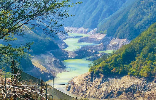 臺(tái)灣德基水庫(kù)集水區(qū)許久未見(jiàn)豐沛雨量進(jìn)帳,大甲溪上游河床巖層裸露,出現(xiàn)峽谷枯木地景。圖片來(lái)源:臺(tái)灣《中國(guó)時(shí)報(bào)》