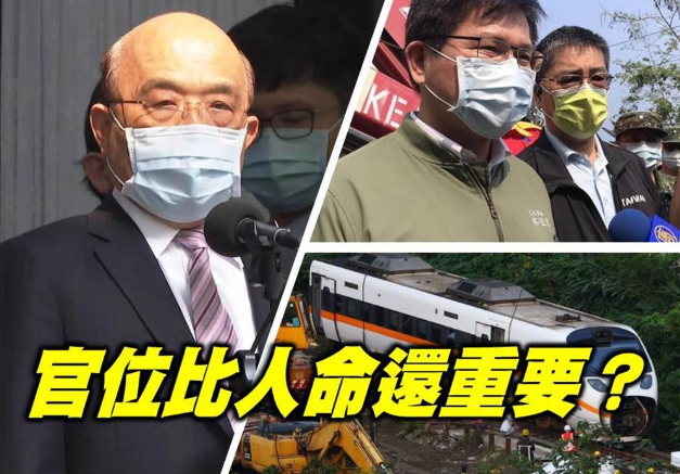 同樣的,該負責的蘇貞昌,也從不提責任的事,彷佛50條人命不值得換他的官位,所以“保位”要緊。而民進黨官員“保位”最好用的一句話術(shù),就是先處理災(zāi)難再說,這個“再說”一旦事情過后就如船過水無痕,他們就繼續(xù)尸位素餐。