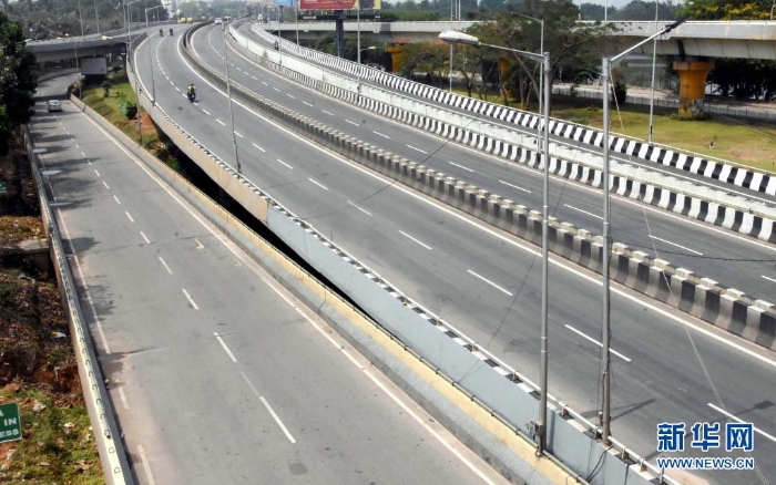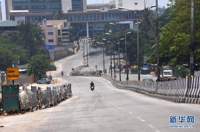 這是4月25日在印度班加羅爾拍攝的“封城”中空蕩的街道。