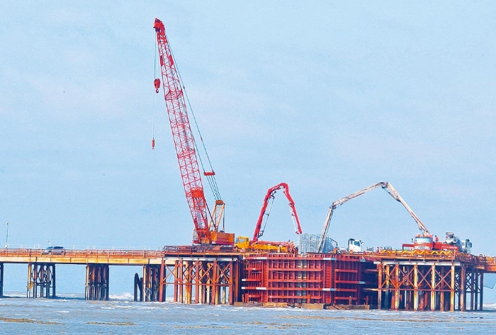 圖為施工中的三接連接橋梁工程現(xiàn)況。(中國時報資料照片)