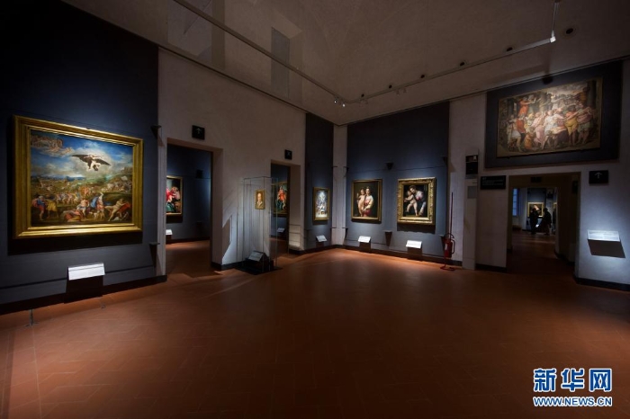 這是5月4日在意大利佛羅倫薩拍攝的烏菲齊美術(shù)館內(nèi)的展室。當(dāng)日,意大利烏菲齊美術(shù)館重新開放。美術(shù)館改建了售票處和接待處,以避免排隊,并開設(shè)了十四個新展室。新華社發(fā)