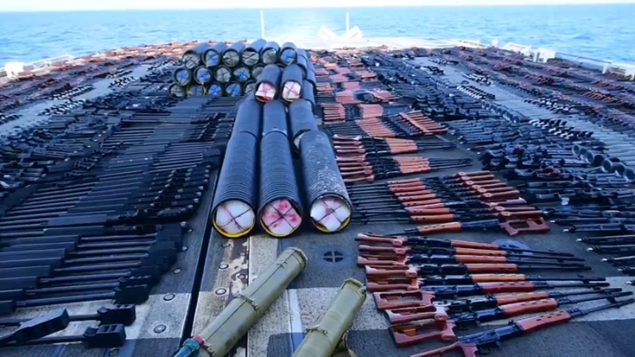 美國《海軍時(shí)報(bào)》5月9日援引美聯(lián)社的報(bào)道稱,一名美國國防部官員表示,美國海軍的初步調(diào)查后發(fā)現(xiàn)這艘船來自伊朗。美方人員登船后,在甲板下方發(fā)現(xiàn)了用綠色塑料袋包裹的武器,其中包括3000支突擊步槍、數(shù)百把重型機(jī)槍和狙擊步槍。