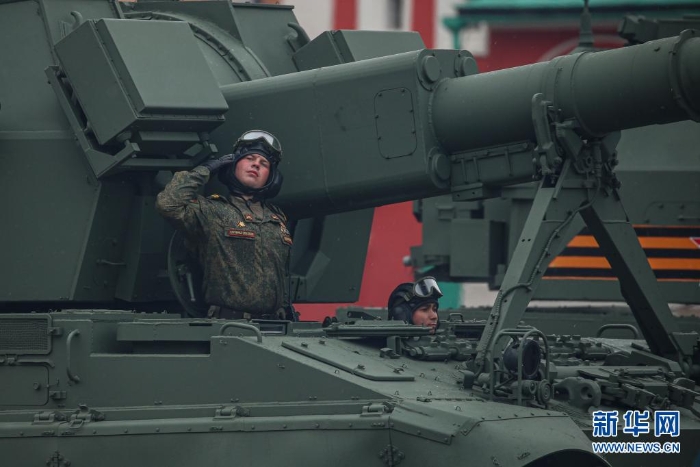 5月9日,在俄羅斯莫斯科舉行的勝利日閱兵式上,士兵駕駛自行火炮駛過紅場。新華社發(fā)(葉甫蓋尼·西尼岑攝)