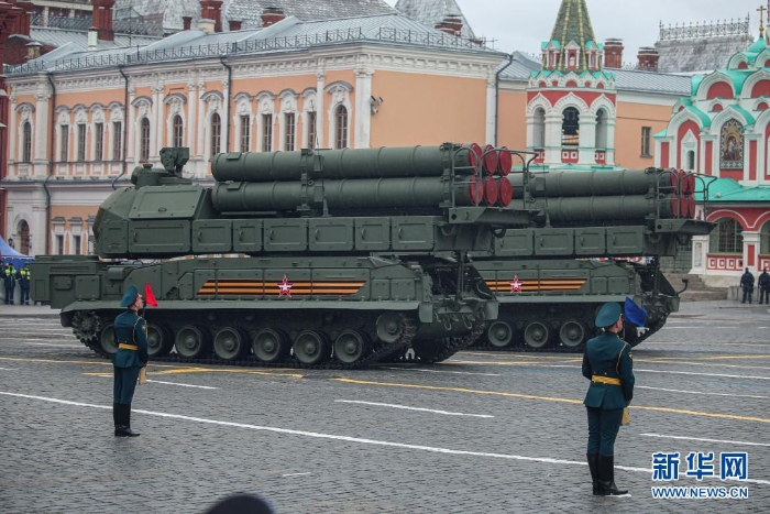 5月9日,在俄羅斯莫斯科舉行的勝利日閱兵式上,山毛櫸-M3防空導(dǎo)彈系統(tǒng)駛過紅場。新華社發(fā)(葉甫蓋尼·西尼岑攝)