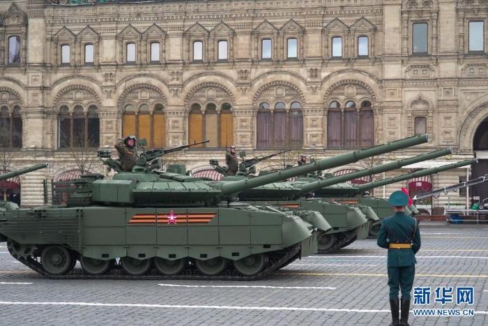 5月9日,在俄羅斯莫斯科舉行的勝利日閱兵式上,坦克編隊駛過紅場。新華社記者苑欣芳攝