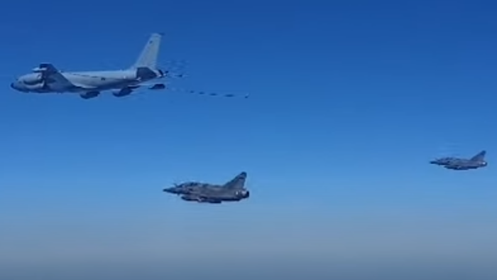 該新聞處稱(chēng),5月11日,俄羅斯雷達(dá)探測(cè)到在黑海中立水域上有空接近俄羅斯邊境的空中目標(biāo)?!盀榱俗R(shí)別并防止侵犯邊境的行為,一架蘇-30戰(zhàn)斗機(jī)升空。這架俄羅斯戰(zhàn)斗機(jī)機(jī)組人員將空中目標(biāo)確定為法國(guó)空軍兩架幻影2000戰(zhàn)術(shù)飛機(jī)和一架C-135加油機(jī),并在黑海上空對(duì)它們進(jìn)行了伴飛。”