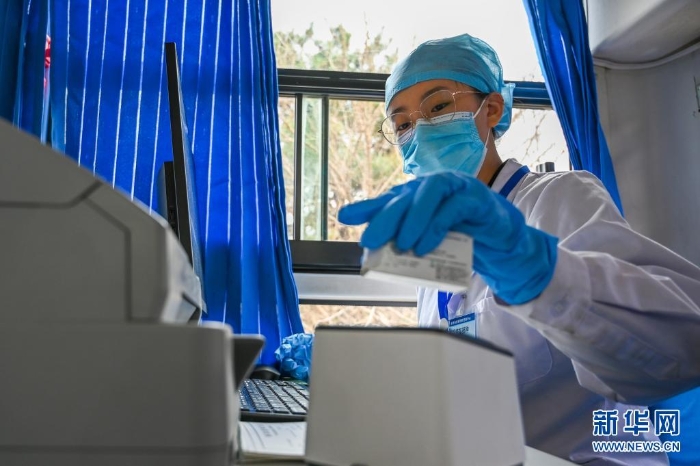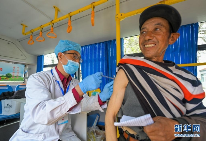 5月13日,在大榆樹(shù)鄉(xiāng)大榆樹(shù)村,醫(yī)務(wù)人員在流動(dòng)接種車(chē)內(nèi)為村民接種。