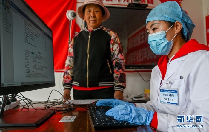 5月13日,在大榆樹(shù)鄉(xiāng)大榆樹(shù)村,醫(yī)務(wù)人員為接種新冠疫苗的村民登記。