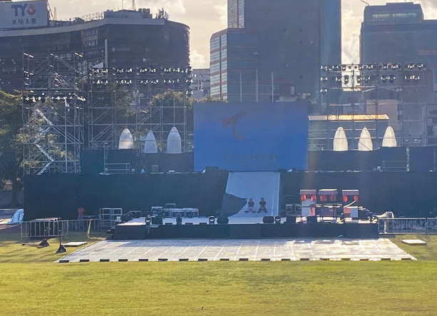 全臺大專校院運動會原訂14日在成功大學(xué)開幕,因應(yīng)疫情嚴(yán)峻,臺灣成功大學(xué)宣布尚未登場的9項賽事將展延至最晚9月底前復(fù)辦,開幕活動及選手之夜一并延期。圖為已經(jīng)搭設(shè)完成的開幕主舞臺。(圖片來源:臺灣《中國時報》)
