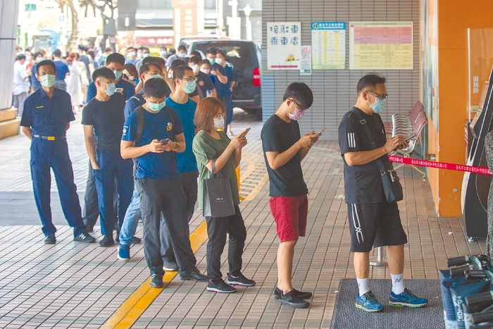全臺新冠肺炎疫情升溫,雙北升為3級警戒,臺北市聯(lián)合醫(yī)院和平院區(qū)16日為警消及預約民眾施打疫苗。(杜宜諳攝)