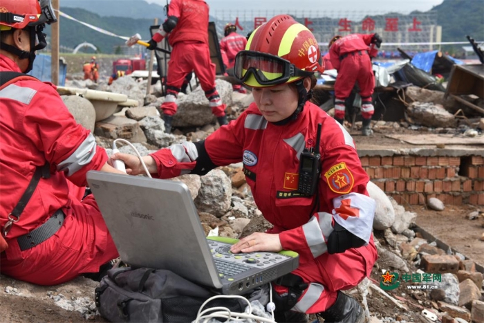救援現(xiàn)場,挖掘機(jī)的挖斗吊起巨大石板,電動(dòng)鑿巖器和混凝土切割機(jī)為被埋壓傷員打通“生命通道”,5G遠(yuǎn)程超聲設(shè)備實(shí)時(shí)把傷員影像傳回后方,將權(quán)威專家?guī)刖仍F(xiàn)場。