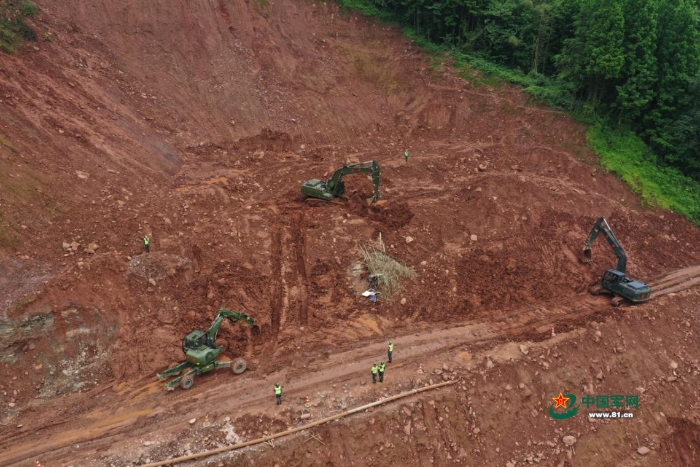 武警第二機(jī)動(dòng)總隊(duì)某支隊(duì)搶修道路。李鵬 攝