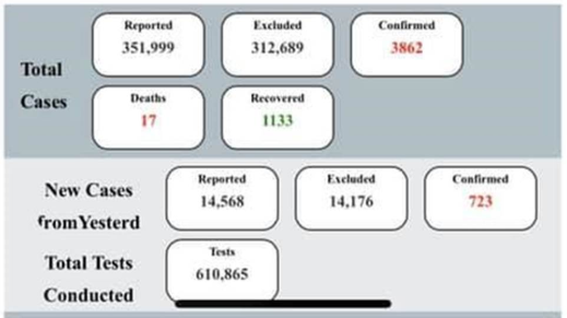 臺衛(wèi)福部門“疾管署”英文版網(wǎng)站標(biāo)示確診病例723例。(圖片來源:臺灣《中時電子報》)
