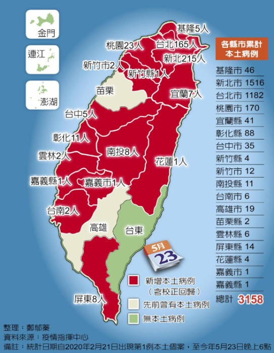 各縣市累計(jì)本土病例。圖片來源:臺(tái)灣《中國(guó)時(shí)報(bào)》