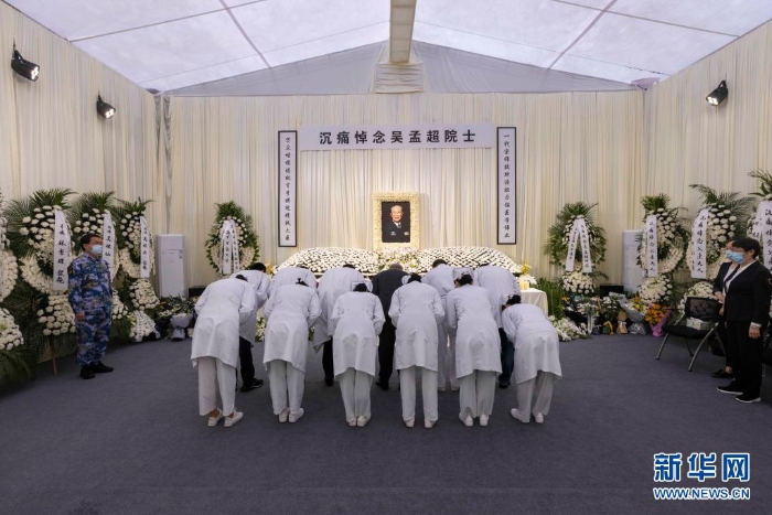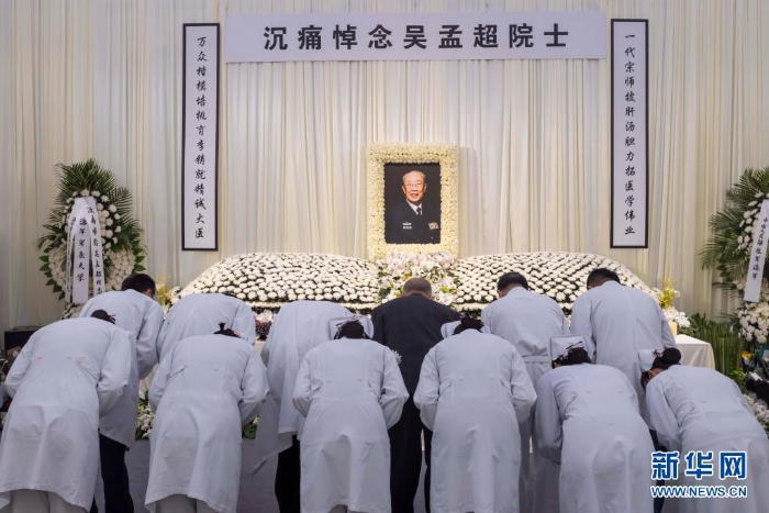 5月23日,人們鞠躬吊唁吳孟超院士。