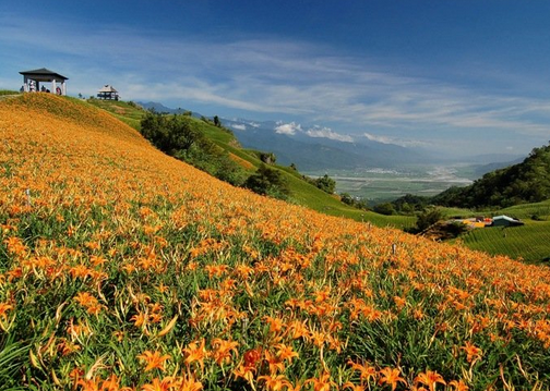 8月進(jìn)入高山金針的產(chǎn)期,花蓮玉里鎮(zhèn)赤柯山與富里鄉(xiāng)的六十石山是島內(nèi)三大高山金針產(chǎn)地,當(dāng)?shù)囟紩e辦盛大的主題花季,讓來自各地的游客倘佯在漫山遍野金黃花海和曬金針的天然美景之中,也讓賞金針花晉身為熱門的觀光旅游行程,展現(xiàn)花東縱谷國家風(fēng)景區(qū)另一種迷人風(fēng)采。