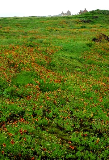 盡管臺灣北部海岸也能到天人菊,卻不若菊島來得具規(guī)模,夏季的澎湖本島和離島均能見到虎皮菊開花。由于實在太常見,天人菊就像“野姜花”和“野百合”,被稱為是“野菊花”。野菊花從初夏可以一直開到初秋,但以盛夏花開最盛最美。暑夏造訪澎湖,陽光耀眼,天人菊花也開得火熱,好似要與夏日陽光比美。