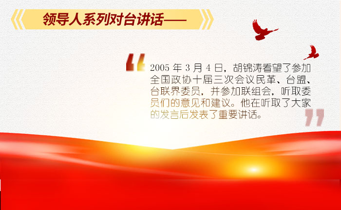 【百年征程 回看臺海】領(lǐng)導(dǎo)人系列對臺講話之胡錦濤(二)