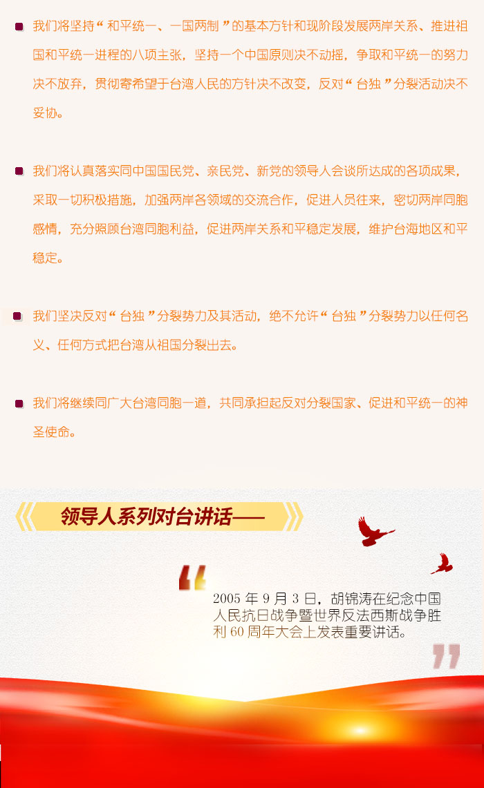 【百年征程 回看臺?!款I導人系列對臺講話之胡錦濤(五)