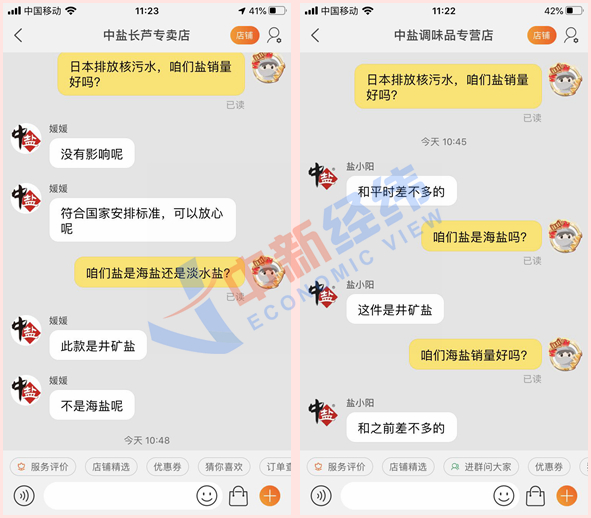 中新經(jīng)緯記者聯(lián)系幾家售鹽電商旗艦店工作人員,詢問是否受到日本欲排核廢水影響??头貜?fù)稱:“沒有影響,可以放心,符合國(guó)家標(biāo)準(zhǔn)?!碑?dāng)詢問近期銷量時(shí),客服表示:“和平時(shí)差不多?!?/p>