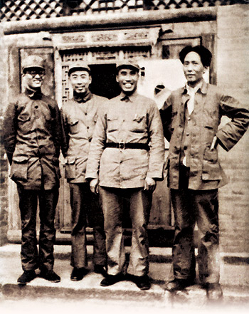 毛澤東、朱德、周恩來、博古在延安窯洞前合影。圖源:新華網(wǎng)-中國記協(xié)網(wǎng)