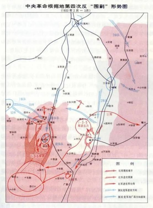 1932年12月,國民黨贛粵閩邊區(qū)“剿匪”總司令部調(diào)集30多個師近40萬人的兵力,準(zhǔn)備對中央革命根據(jù)地發(fā)動第四次“圍剿”。1933年1月底,蔣介石到南昌親自兼任贛粵閩邊區(qū)“剿匪”軍總司令,任命陳誠為前敵總指揮,以嫡系部隊(duì)12個師16萬余人為“圍剿”主攻部隊(duì),采取“分進(jìn)合擊”的方針,企圖將紅一方面軍主力殲滅于黎川、建寧地區(qū)。