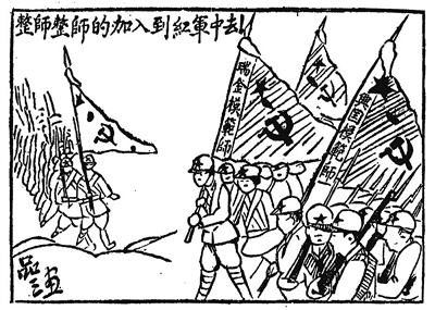 漫畫《整師整師的加入到紅軍中去》。圖源:中國(guó)軍網(wǎng)-解放軍報(bào)