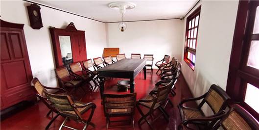 遵義會議召開的會議室按當(dāng)年場景擺放著會議桌椅。圖:央視新聞