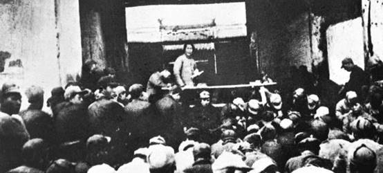 毛澤東在黨的活動分子會議上作《論反對日本帝國主義的策略》報告。新華社發(fā)