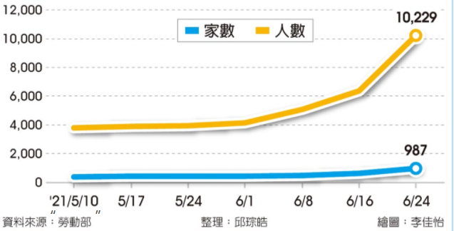 無薪假家數、人數雙雙暴增!臺當局勞動部門24日公布無薪假最新統計,總計有987家事業(yè)單位,實施人數為1萬229人,這次增加362家,人數增加3846人,不僅是今年以來首度突破1萬人大關,也是今年單月增幅最高的一周,這次重災區(qū)仍落在住宿及餐飲業(yè),有175家、2864人正在實施無薪假。