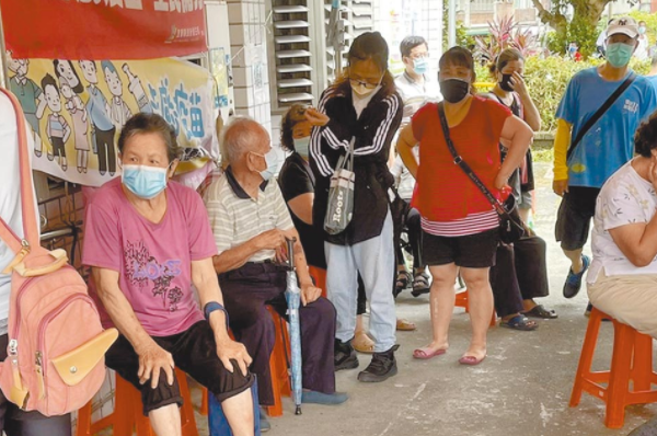受到Delta病毒在屏東群聚感染影響,宜蘭縣長者施打疫苗數(shù)暴增,28日蘇澳鎮(zhèn)衛(wèi)生所外排滿等打疫苗的人潮。(讀者提供/圖片來源:臺灣《中國時報》)