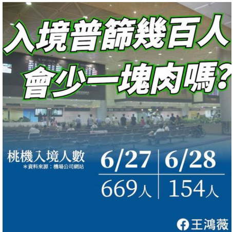 臺(tái)灣屏東縣枋山鄉(xiāng)發(fā)生Delta變異株群聚,引起全臺(tái)關(guān)注,中國(guó)國(guó)民黨臺(tái)北市議員王鴻薇昨天在臉書發(fā)文表示,指揮中心到現(xiàn)在仍然堅(jiān)持,只有從7個(gè)列為高風(fēng)險(xiǎn)地區(qū)返臺(tái)的旅客,要在入境及居檢結(jié)束時(shí)各做一次PCR檢測(cè)。指揮中心一再說檢驗(yàn)量能充足,而現(xiàn)在每天入境不到1000人,對(duì)照陳時(shí)中說全臺(tái)一天最高可以篩12萬(wàn)的狀況下,做入境普篩會(huì)嚴(yán)重壓縮到篩檢量能嗎?會(huì)少塊肉嗎?還是因?yàn)闀?huì)打臉過去的自己,所以死都不拉下臉來做?不只是新北市長(zhǎng)侯友宜從去年就開始呼吁入境普篩,現(xiàn)在連綠營(yíng)自家的桃園市長(zhǎng)鄭文燦也跳出來支持,請(qǐng)問指揮中心到底在堅(jiān)持什么?
