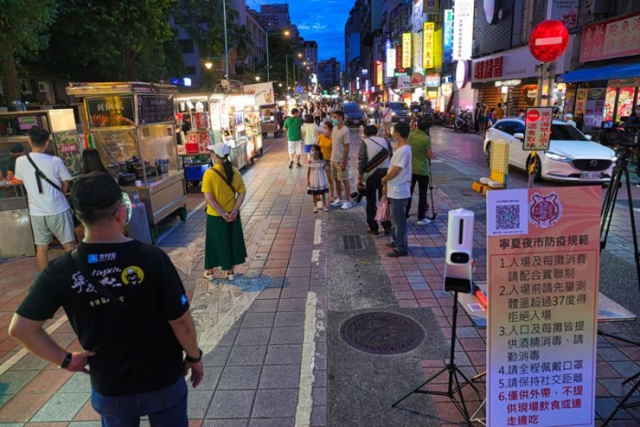 圖:臺北寧夏夜市29日晚間“微解封”,僅提供外賣服務。\臺灣“中央社”