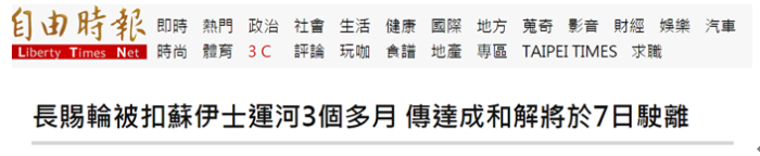 臺灣《自由時報》消息,臺灣長榮海運承租貨輪“長賜輪”(Ever Given)今年3月在蘇伊士運河擱淺,導致航道癱瘓,最新消息稱,長賜輪與蘇伊士運河管理局已達成和解,預計將于本月7日駛離。