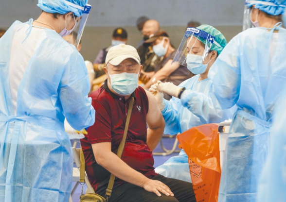 圖為臺北市長輩8日在內(nèi)湖高工接種站施打莫德納疫苗。(圖片來源:臺灣《中國時報》)