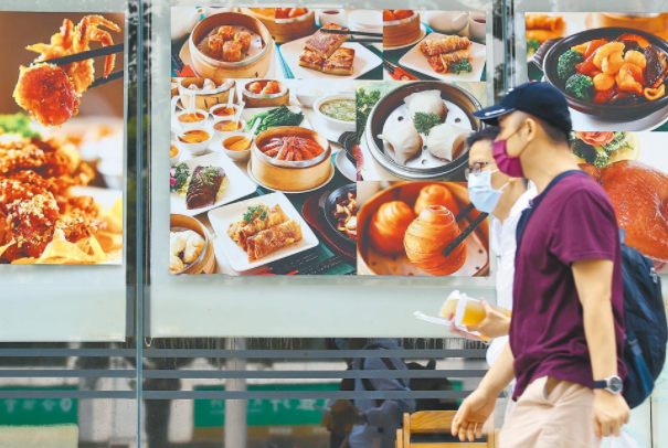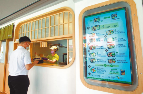 自下周二(13日)起,民眾最關(guān)心的夜市、餐飲業(yè)可以開放內(nèi)用。但“食藥署”說,業(yè)者須落實(shí)顧客實(shí)聯(lián)制,顧客除用餐外須全程戴口罩,桌與桌、顧客與顧客之間需保持至少1.5米,否則要用隔板隔開。百貨、賣場(chǎng)的美食街也可內(nèi)用,臺(tái)經(jīng)濟(jì)部門表示,須采梅花座、有隔板的個(gè)人套餐,不可共食,也不提供酒精飲料,百貨美食區(qū)只能容留二分之一人數(shù)。電影院也可開放,民眾看電影要梅花座、全程戴口罩,文化部門官員表示,建議優(yōu)先采預(yù)售票方式以控管人流,室內(nèi)、戶外及等候區(qū)域都禁止飲食。 8日中午用餐時(shí)間,民眾購買外帶的餐點(diǎn)。圖片來源:臺(tái)灣《中國時(shí)報(bào)》