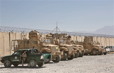 7月8日,美軍遺棄的軍用車輛停放在阿富汗巴格拉姆空軍基地內(nèi)
