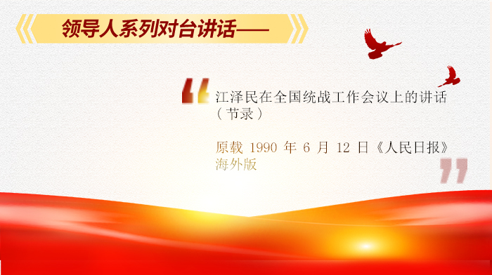 【百年征程 回看臺(tái)?!款I(lǐng)導(dǎo)人系列對(duì)臺(tái)講話之江澤民(三)
