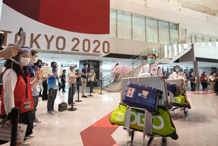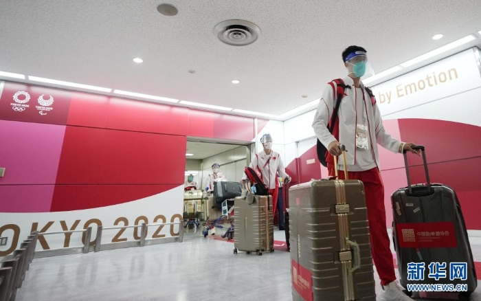當(dāng)日,參加?xùn)|京奧運(yùn)會(huì)的中國體育代表團(tuán)部分成員抵達(dá)東京。