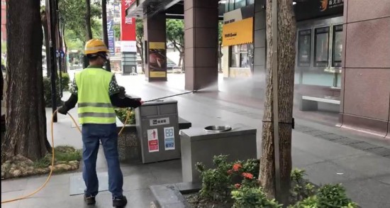 臺(tái)中新光三越正在進(jìn)行消毒。圖片源自臺(tái)灣中時(shí)新聞網(wǎng)