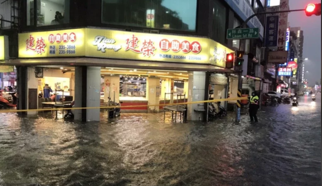 水利局統(tǒng)計截至目前,全市已累計18處積淹水,目前民族、八德路口(八德路北往南)機車道積水約半個輪子深,新興分局中正三所巡邏警網(wǎng)拉起封鎖線,暫時封閉半個慢車道,并于傳出積淹水路口加強交通疏導。