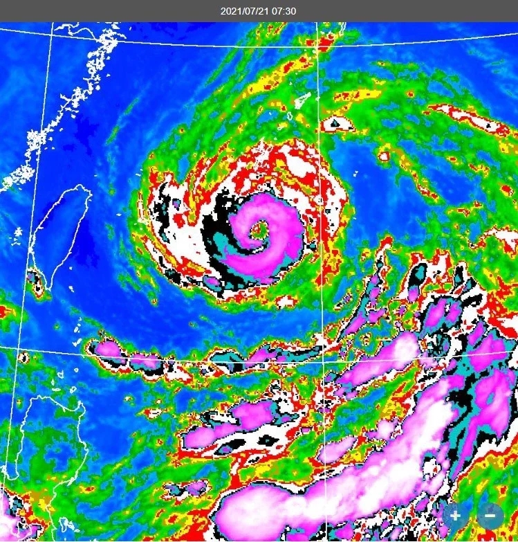 鄭明典以衛(wèi)星云圖表示,圖中煙花臺風紫色的眼墻云系接近環(huán)繞一整圈,相對來說強度稍有增強。煙花臺風動向還有變數(shù),預(yù)報中心將有新資料公布。