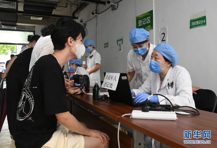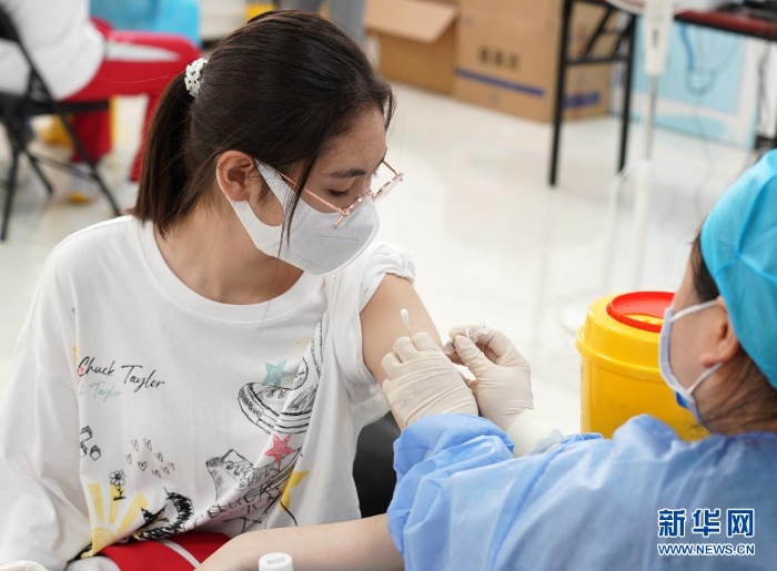7月21日,醫(yī)護人員為首都師范大學(xué)附屬中學(xué)永定分校的學(xué)生接種新冠病毒疫苗。