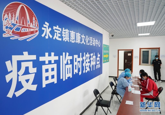 7月21日,來自首都師范大學(xué)附屬中學(xué)永定分校的學(xué)生在北京市門頭溝區(qū)永定鎮(zhèn)惠康文化活動中心疫苗臨時接種點接受健康問詢。
