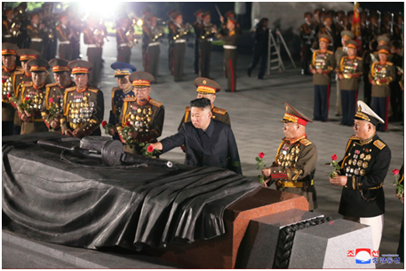朝中社稱(chēng),金正恩向那些光榮維護(hù)國(guó)家主權(quán)和尊嚴(yán)、創(chuàng)造出朝鮮革命傳承的光輝歷史的偉大年代的英雄們致以崇高的敬意。