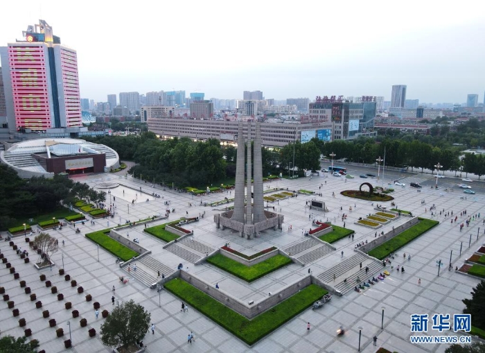 這是7月26日拍攝的唐山抗震紀(jì)念碑廣場(chǎng)(無人機(jī)照片)。