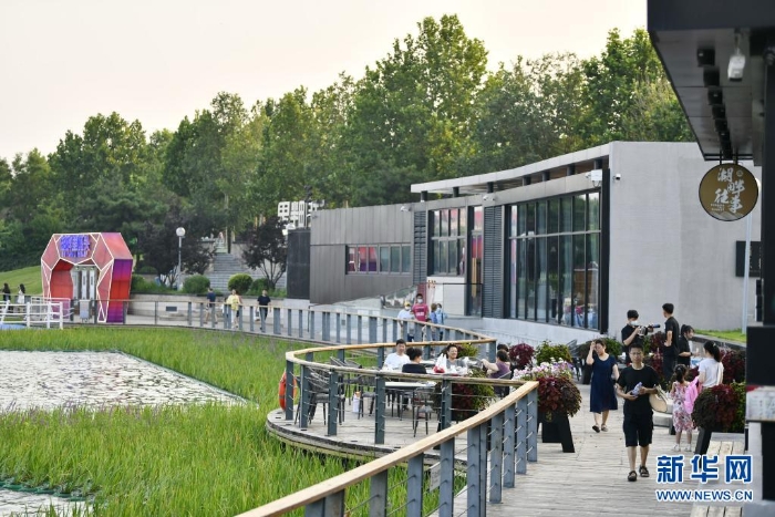 7月26日,游客在唐山南湖公園內(nèi)休閑。