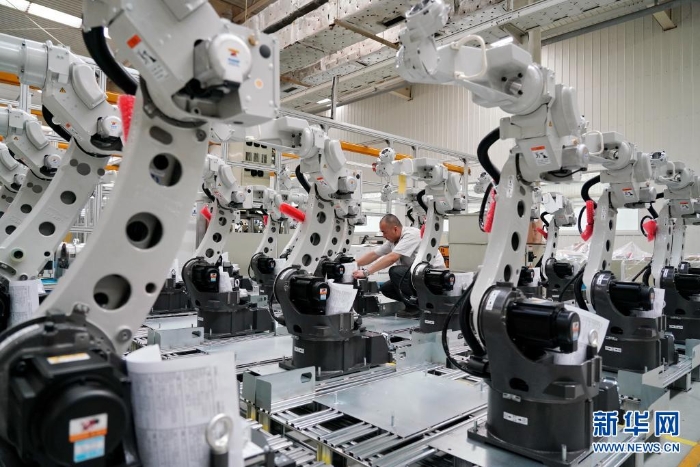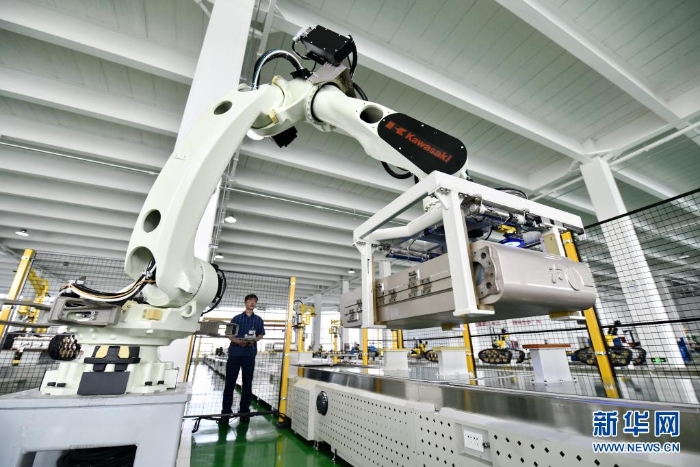 7月26日,工人在唐山高新技術(shù)產(chǎn)業(yè)開發(fā)區(qū)中信重工開誠(chéng)智能裝備有限公司內(nèi)調(diào)試機(jī)器人。