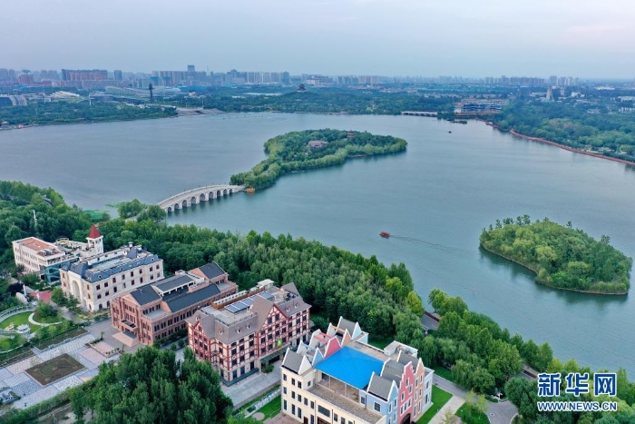 7月26日拍攝的唐山南湖公園(無人機(jī)照片)。